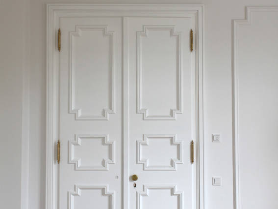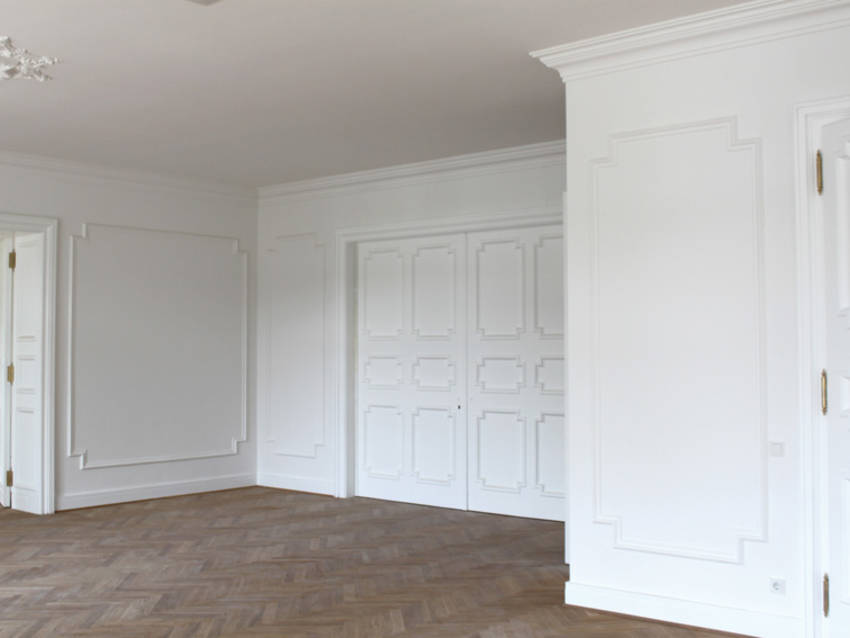 Nach Abschluss der Arbeiten war Boris Steiner besonders stolz auf die makellose seidenglänzende Optik der sanierten Kassettentüren, die inzwischen wieder das Prädikat „hochherrschaftlich“ verdienen. Die sorgfältige Aufarbeitung von alten Haus- und Innentüren ist ein spezielles Arbeitsgebiet und auch ein Aushängeschild des Malerbetriebes. Mit diesem Objekt hat das Malerteam seiner Referenzliste wieder ein eindruckvolles Beispiel hinzugefügt.