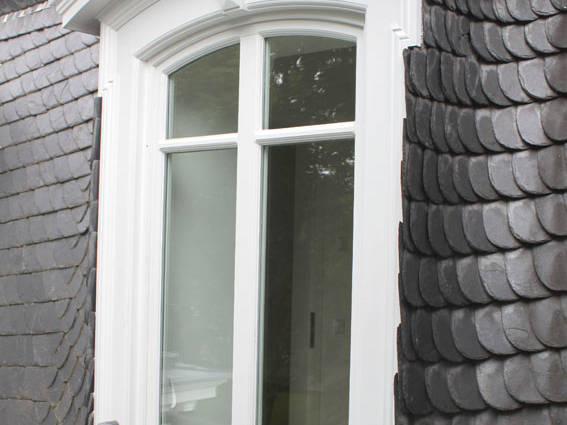 Auch bei den Fensterrahmen wurden zunächst alle losen Anstrichteile entfernt. Danach wurde der zum Teil stark vergraute Holzuntergrund gereinigt und sorgfältig geschliffen. In kurzen Abständen folgten dann der Grund-, der Zwischen- und der Schlussanstrich mit dem Fensterlack Lucite® VentiSatin. Das Eintopfsystem für den Grund-, Zwischen- und Deckanstrich auf Holz und maßhaltigen Holzbauteilen ist ebenfalls umweltschonend und geruchsneutral und kann im Innen- und Außenbereich eingesetzt werden. Seine Block0festigkeit und seine Verträglichkeit mit allen modernen Fensterdichtprofilen geben dabei die notwendige Sicherheit für eine professionelle Fensterlackierung. Darüber hinaus ist die Beschichtung vergilbungsbeständig und diffusionsfähig. Das Material wurde von dem Team um Malermeister Boris Steiner mit der Rolle und dem Pinsel appliziert und überzeugte dabei vor allem durch sein hohes Deckvermögen, die sichere Kantenabdeckung und die hohe Ergiebigkeit.